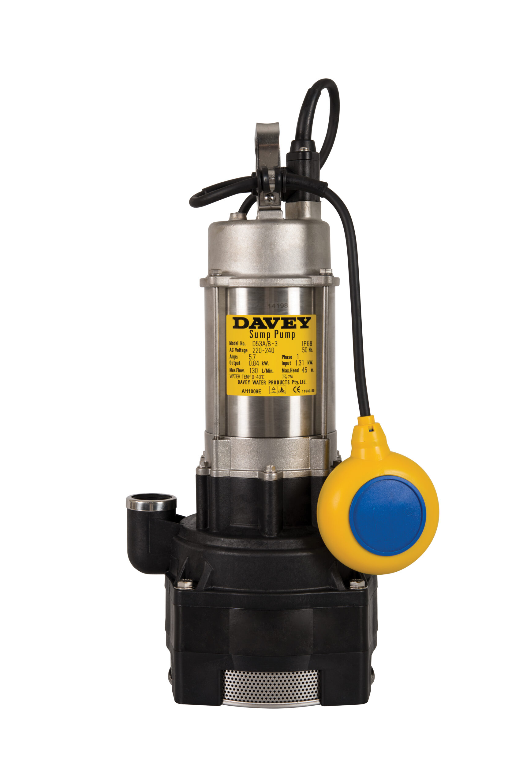• Float switch fitted for automatic operation